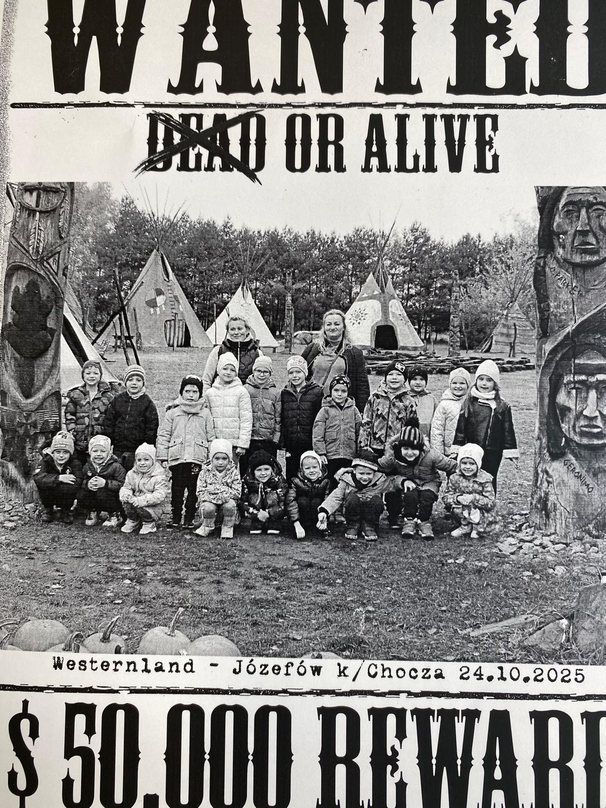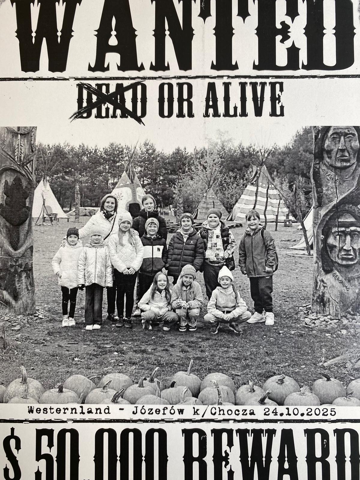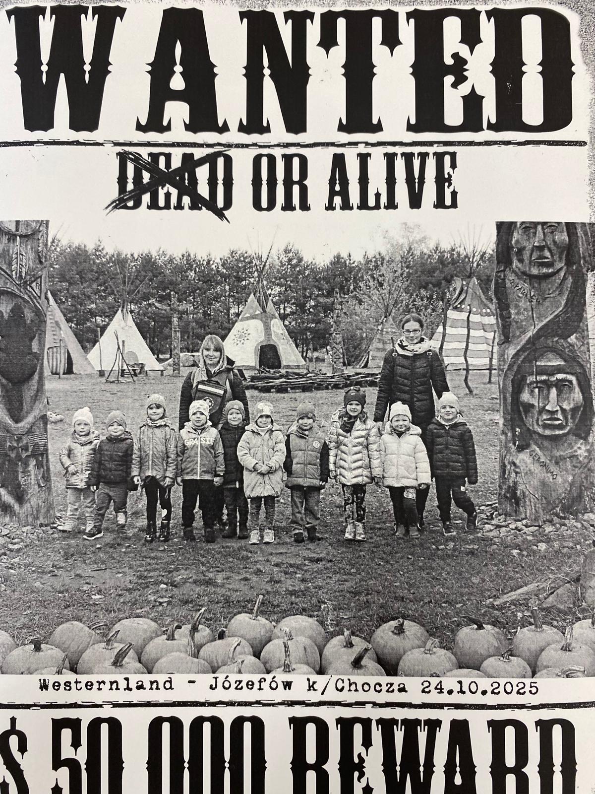 Dnia 24.10.2025 roku przedszkolaki oraz uczniowie klasy 2 wzięli udział w wyjątkowej wycieczce do Westerlandu - Amerykańskiej farmy dyni - w Choczu. Na dzieci czekało mnóstwo atrakcji – przejażdżka bryczką, zabawy na placu rekreacyjnym, rzucanie podkową, kapeluszem, spotkanie ze zwierzętami w mini zoo oraz pokaz magika z wykorzystaniem baniek mydlanych. Uczestnicy mogli również spróbować swoich sił w grach terenowych i wspólnych zabawach integracyjnych, np. terenowy tor przeszkód czy przejście przez labirynt, spotkanie z traperem - poszukiwaczem złota. Ważnym elementem wyjazdu była możliwość podziwiania różnych gatunków i wielkości dyni, które witały nas swoim urokiem i wspaniałymi kompozycjami na całym terenie farmy.
